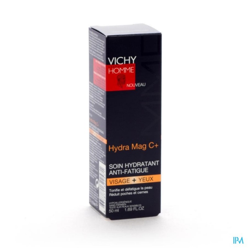 De Hydra Mag C+ van Vichy is een gezichtsverzorging voor mannen met een gevoelige huid, die tekenen van vermoeidheid vertoont: vochtarme huid, doffe teint, vermoeide blik, kringen en wallen.Deze gezichtscrème is een hydraterende verzorging voor gezicht en ogen, die de huid veerkrachtiger maakt en tekenen van vermoeidheid vermindert. De formule is verrijkt met een combinatie van magnesium, gefosforiseerd Vitamine C en Dextran om uw huid weer energie te geven, wallen en kringen te verminderen, en uw opperhuid te helpen om externe agressies te bestrijden.De Hydra Mag C+ is hypoallergeen en oftalmologisch getest.RESULTATEN*: Uw huid voelt direct: Veerkrachtiger: bij 91%, Zachter: bij 98%, Gehydrateerd: bij 99%. De huid heeft met de dag meer weerstand en de tekenen van vermoeidheid zijn zichtbaar verminderd. *Zelfevaluaties bij 129 mannen.