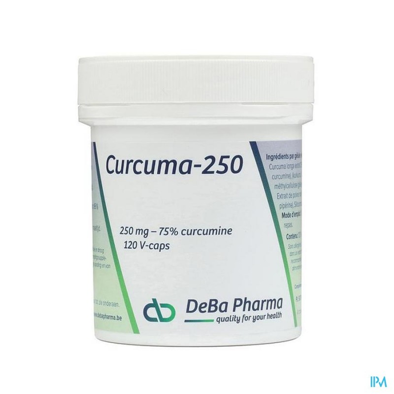 Curcuma is afkomstig van de geelwortel en is een topkruid om allerhande ontstekingen te bedwingen. Het remt ontstekingen bij gewrichtsklachten, helpt de soepelheid van de gewrichten behouden en ondersteunt de lever en de galwegen. Curcuma-250 Caps 120 Deba is een voedingssupplement, verkrijgbaar in uw buurtapotheek of online apotheek. Neem niet meer dan de aanbevolen dagelijkse dosis vermeld op de verpakking. Het vervangt geen gezonde levensstijl en gevarieerde en evenwichtige voeding. Vraag raad aan uw apotheker. Het product altijd buiten het bereik van kinderen houden.