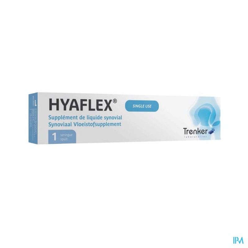Alle synoviale gewrichten, en meer bepaald de gewrichten die het lichaamsgewicht dragen, bevatten visco-elastisch hyaluronzuur. Deze substantie heeft smerende eigenschappen en biedt bescherming tegen schokken. Omdat het kraakbeen minder wordt belast, kan het zich herstellen. Zo wordt de evolutie van osteoartritis afgeremd.Hyaflex wordt aanbevolen voor de behandeling van gewrichtspijn of -stijfheid als gevolg van degeneratieve of posttraumatische osteoartritis in de knie. Het dient als vervanging van of kan worden gebruikt in combinatie met een traditionele niet-farmacologische therapie of een pijnstillende behandeling.Het hyaluronzuur in Hyaflex is een natuurlijke polysacharide, afkomstig van micro-organismen (Streptococcus zooepidemicus), die vervolgens wordt gezuiverd. Hyaflex wordt in de gewrichtsholte ingespoten om het gewrichtssmeer te herstellen.