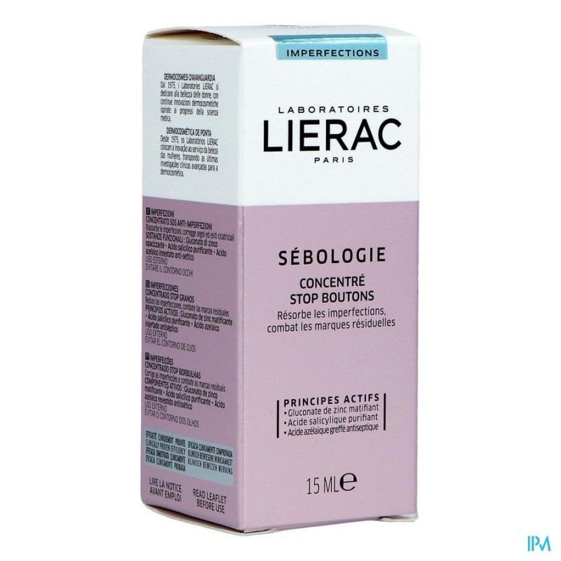 SEBOLOGIE CONCENTRAAT TEGEN PUISTJESConcentraat tegen puistjes Doelgerichte correctie van huidprobleempjesLOKALE BEHANDELING VAN PUISTJES EN LITTEKENSHet concentraat tegen puistjes is geïnspireerd op de esthetische zuiverende resurfacingtechniek*. Het resorbeert snel puistjes en littekens dankzij zijn zeer efficiënte bestanddelen als adstringerend zinkgluconaat, keratolytisch salicylzuur, geënt azelaïnezuur dat de bacterie die puistjes veroorzaakt afremt, en antiseptisch calaminepoeder.De actieve textuur in twee fasen (poeder en vloeistof) maximaliseert het synergetische effect van elk van de fasen. *De zuiverende resurfacing is een esthetische behandeling waarbij de huid geëxfolieerd en de celvernieuwing gestimuleerd wordt. De poriën worden grondig gereinigd, de huid is zuiverder.