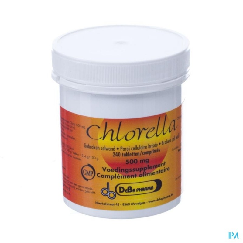 Samenstelling per 2 tablettenChlorella vulgaris beijerinck (gebroken celdwand) 1000 mg 3000 mgProteïne 591 mgBeta-caroteen 600 mcgVitamine B-12 1 mcgIjzer 1 mgZink 0,7 mgChlorofyl 25 mgRNA 30 mgDNA2,75 mg Chlorella Comp 240x500mg Deba is een voedingssupplement, verkrijgbaar in uw buurtapotheek of online apotheek. Neem niet meer dan de aanbevolen dagelijkse dosis vermeld op de verpakking. Het vervangt geen gezonde levensstijl en gevarieerde en evenwichtige voeding. Vraag raad aan uw apotheker. Het product altijd buiten het bereik van kinderen houden.