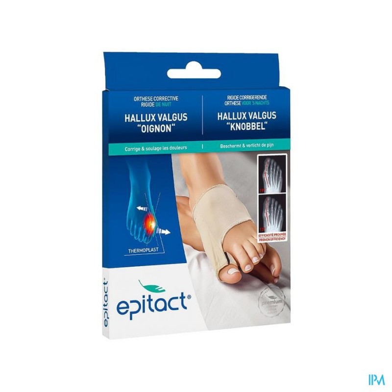 Door dagelijks de corrigerende EPITACT® orthese voor \'s nachts te dragen wordt de hallux valgus gecorrigeerd en groeit hij niet verder. De orthese helpt \'s nachts gewrichtspijn en pijn door aanraking te verlichten.