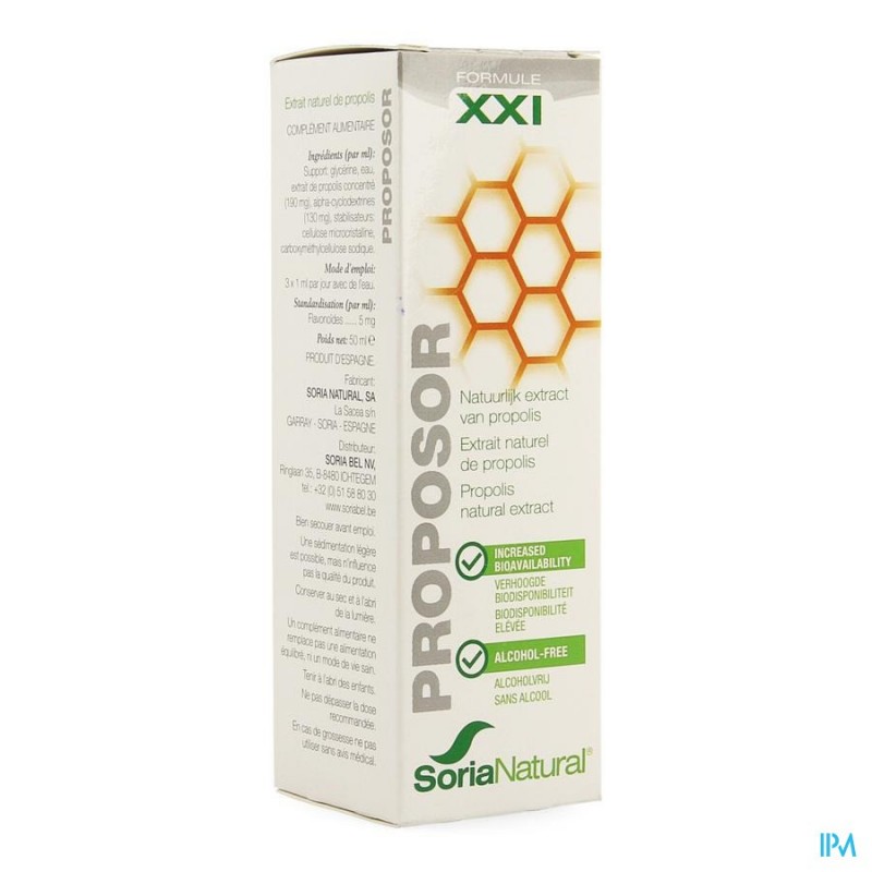 Plantaardige glycerine (draagstof), alfa-cyclodextrine, propolis extract, microkristallijne cellulose (draagstof), natriumcarboxymethylcellulose (antiklontermiddel)Eigenschappen