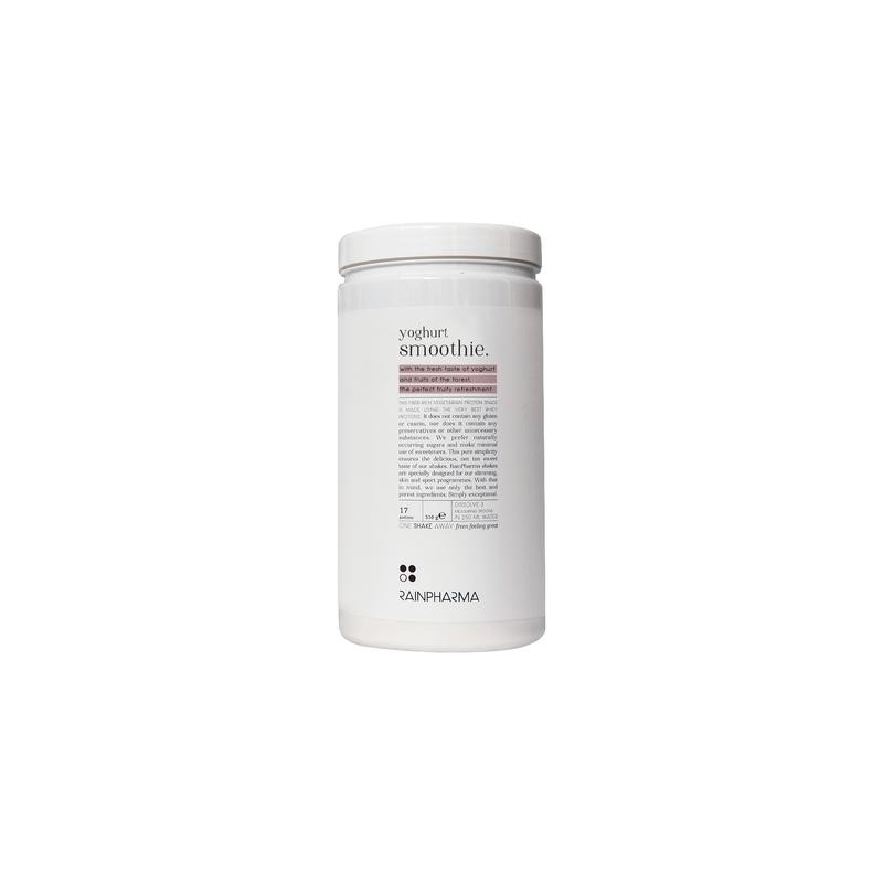 Tussendoortje in poedervorm voor de bereiding van een drank, met de smaak van yoghurt en bosvruchten, met zoetstof en met van nature aanwezige suikers, rijk aan eiwitten, waarvan de energetische waarde 117 kcal bedraagt per portie.