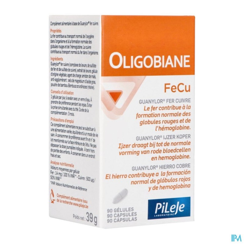 Guanylor® IJzer Koper (gistextract, ijzersulfaat en kopersulfaat), gistextract, plantaardige capsule (hydroxypropylmethylcellulose), maïszetmeel, antiklontermiddel (magnesiumzouten van vetzuren).VoedingsanalyseGemiddelde analysePer capsuleVoedingsreferentiewaardeIJzer(mg)14100Koper(?g)50050 Oligobiane Caps 90 is een voedingssupplement, verkrijgbaar in uw buurtapotheek of online apotheek. Neem niet meer dan de aanbevolen dagelijkse dosis vermeld op de verpakking. Het vervangt geen gezonde levensstijl en gevarieerde en evenwichtige voeding. Vraag raad aan uw apotheker. Het product altijd buiten het bereik van kinderen houden.