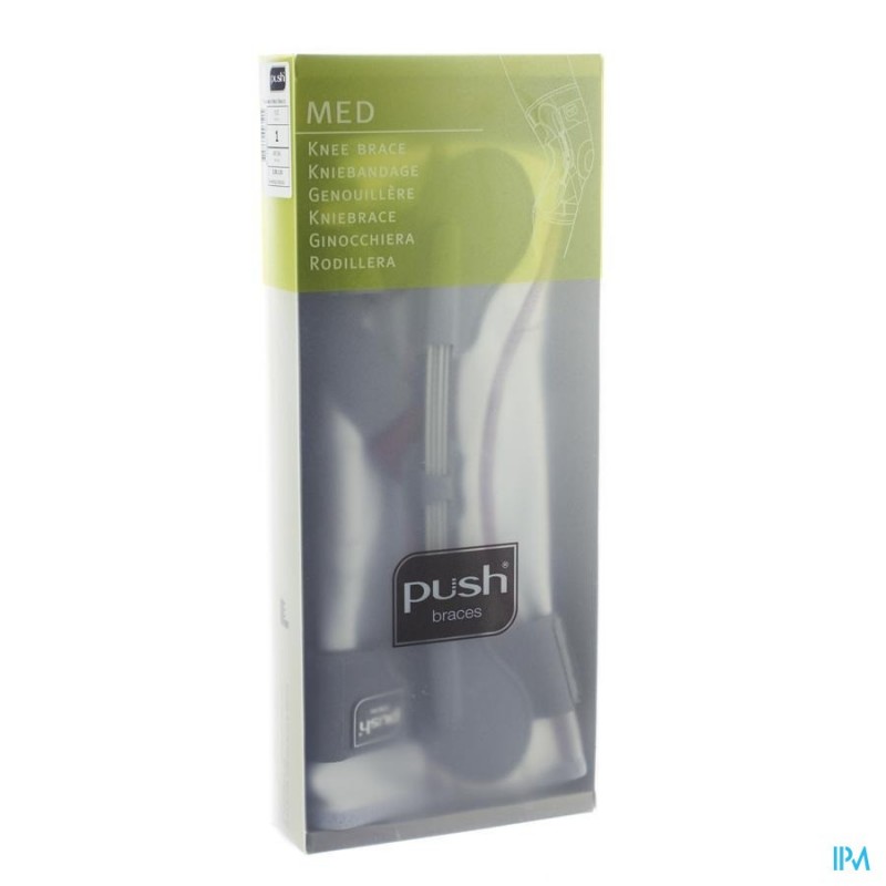De Push med Kniebrace biedt een hoge mate van ondersteuning aan het kniegewricht in medio-laterale richting. De knie wordt ondersteunt door 2 bladveerscharnieren die op unieke wijze de natuurlijke rotatiebeweging van de knie volgen. Hierbij wordt flexie en extensie van de knie niet gehinderd. De bandconstructie zorgt voor een goede aansluiting van de baleinscharnieren tegen het gewricht. De goede anatomische pasvorm en de siliconenapplicatie bevorderen het positiebehoud van de brace tijdens het lopen. Door het beperkte volume wordt de brace onopgemerkt onder de kleding gedragen. Sympress? Technologie De brace is gemaakt van Sympress?, een hoog kwalitatief comfortabel materiaal. Het product voelt zacht aan en biedt de gebruiker een comfortabel en beschermd gevoel. De Push med Kniebrace is eenvoudig aan te leggen en kan zonder problemen gewassen worden. INDICATIES