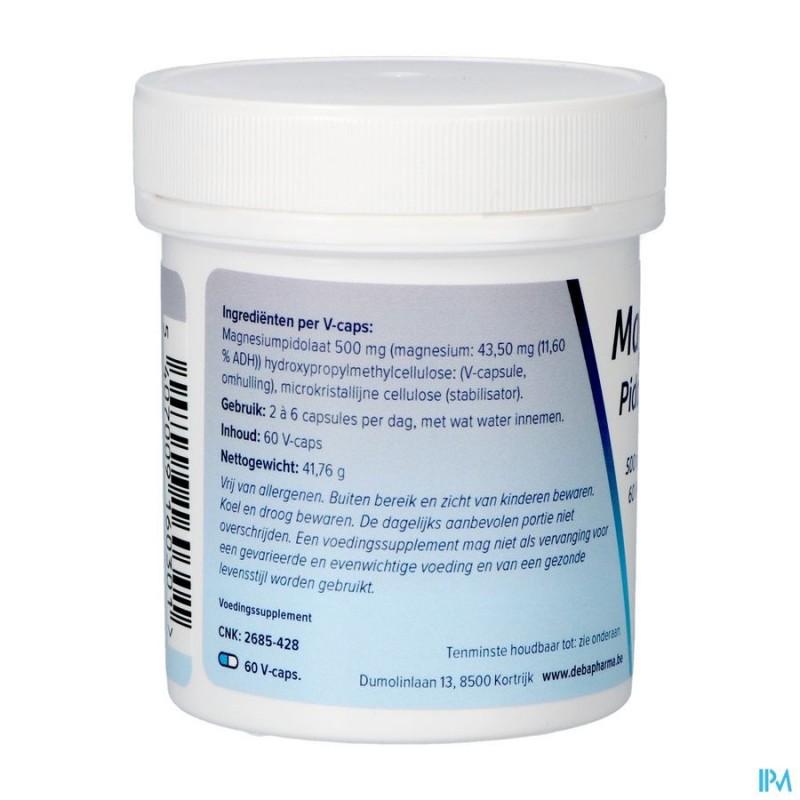 2 à 6 capsules per dag, met wat water innemen. Magnesiumpidolaat V-caps 60x500mg Deba is een voedingssupplement, verkrijgbaar in uw buurtapotheek of online apotheek. Neem niet meer dan de aanbevolen dagelijkse dosis vermeld op de verpakking. Het vervangt geen gezonde levensstijl en gevarieerde en evenwichtige voeding. Vraag raad aan uw apotheker. Het product altijd buiten het bereik van kinderen houden.