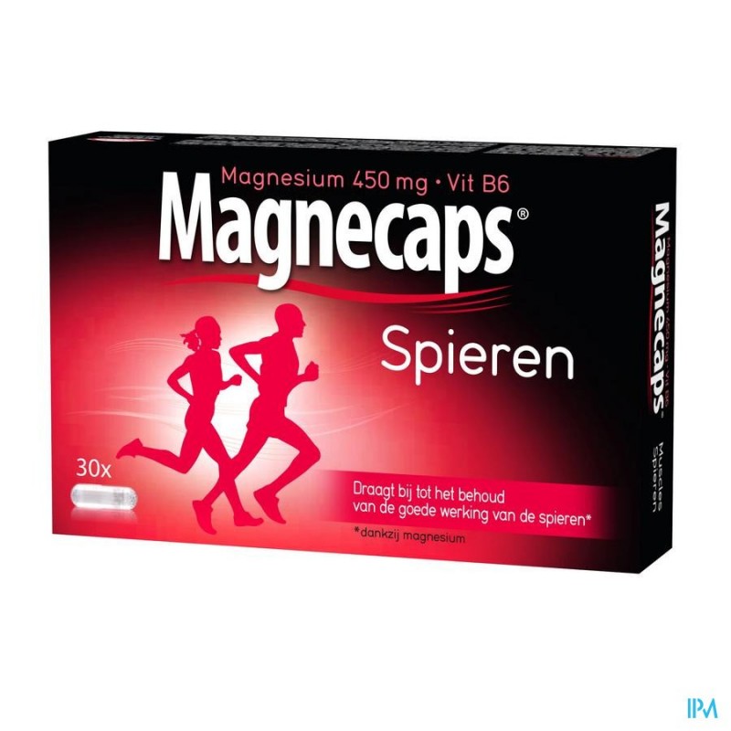 Ingrediënten per 1 capsule (% Referentie-inname):Magnesiumoxide (450 mg Mg (120%)) ? Capsule: gelatine, schellak, propyleenglycol ? Vulstof: microkristallijne cellulose ? Antiklontermiddelen: magnesiumstearaat, talk ? Kleurstoffen: titaandioxide (E171), ijzeroxide (E172) ? Pyridoxine hydrochloride (1,4 mg Vit. B6 (100%)). Magnecaps Spierkrampen Nf Caps 30 is een voedingssupplement, verkrijgbaar in uw buurtapotheek of online apotheek. Neem niet meer dan de aanbevolen dagelijkse dosis vermeld op de verpakking. Het vervangt geen gezonde levensstijl en gevarieerde en evenwichtige voeding. Vraag raad aan uw apotheker. Het product altijd buiten het bereik van kinderen houden. Omschrijving