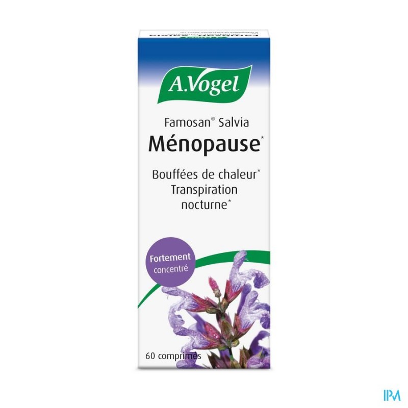 Famosan Salvia helpt bij opvliegers en nachtelijk transpireren. De krachtige formule is ontwikkeld volgens de laatste wetenschappelijke inzichten en bevat een sterk geconcentreerd salvia-extract dat je lichaam op 100% natuurlijke wijze ondersteunt.MenopauzeRond het 47ste levensjaar begint het lichaam van een vrouw zich voor te bereiden ophet beëindigen van de vruchtbare periode. De eicellen zijn dan bijna op, waardoor de eierstokken minder oestrogeen aanmaken. Dit is merkbaar aan de menstruatie die achterwege blijft. Deze wordt onregelmatiger en stopt gemiddeld helemaal rond het 52ste levensjaar. Vaak gaat de overgang gepaard met menopauzale klachten. Veel voorkomend zijn opvliegers en (nachtelijk) transpireren. Speciaal voor deze verschijnselen heeft A.Vogel Famosan Salvia ontwikkeld.Salvia officinalisA.Vogel Famosan Salvia bevat een extract van de heilzame plant Salvia officinalis. Deze plant komt oorspronkelijk uit de landen in de Balkan en rond de Middellandse Zee. Voor A.Vogel Famosan Salvia wordt de plant biologisch geteeld.De naam Salvia, afkomstig van het Latijnse woord salvere, betekent \"heilzaam kruid\".De plant staat van oudsher bekend om zijn positieve invloed op opvliegers en (nachtelijk) transpireren. A.Vogel Famosan Salvia is een voedingssupplement, verkrijgbaar in uw buurtapotheek of online apotheek. Neem niet meer dan de aanbevolen dagelijkse dosis vermeld op de verpakking. Het vervangt geen gezonde levensstijl en gevarieerde en evenwichtige voeding. Vraag raad aan uw apotheker. Het product altijd buiten het bereik van kinderen houden.