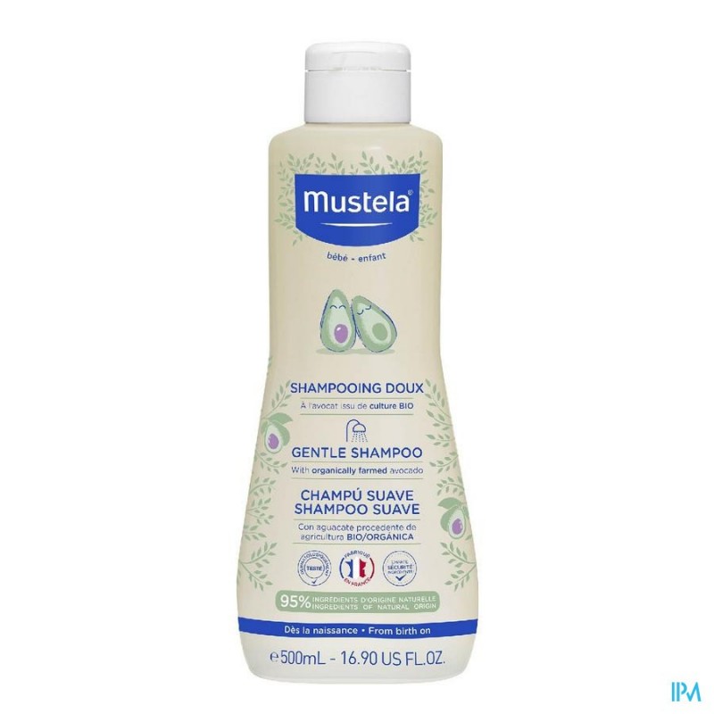 De Zachte Shampoo met biologische avocado voor de fijne en delicate haartjes van pasgeborenen(1), baby\'s en kinderen is het ideale product om dagelijks de haartjes te wassen en te ontwarren.De Zachte Shampoo bevat 95% ingrediënten van natuurlijke oorsprong, de overige 5% worden gebruikt om een aangename textuur en een goede bescherming van de formule op lange termijn te verkrijgen. Laat een unieke geur achter op de huid, de mythische Mustela geur.Dit product, dat onder dermatologisch en pediatrisch toezicht is getest, garandeert een hoge tolerantie en veiligheid vanaf de geboorte(1).(1)Baby\'s die de neonatologie hebben verlaten.
