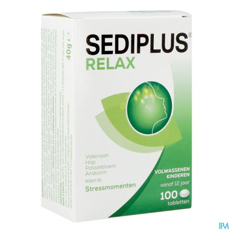 SEDIPLUS Relax kan overdag ingenomen worden, voor een ontspannend en rustgevend effect of gedurende periodes van tijdelijke stress. Bij inname voor het slapengaan, heeft SEDIPLUS Relax een gunstige invloed op de kwaliteit van de nachtrust, vooral tijdens periodes van stress en/of spanningen. SEDIPLUS Relax tabletten, op plantaardige basis, bevatten een combinatie van extracten van uitgekozen planten: Valeriaan, Hop, Wilde passiebloem en Andoorn.
