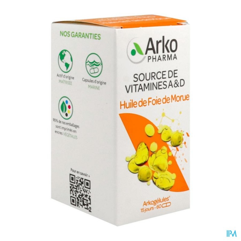 Arkocaps Levertraanolie 60 is een voedingssupplement, verkrijgbaar in uw buurtapotheek of online apotheek. Neem niet meer dan de aanbevolen dagelijkse dosis vermeld op de verpakking. Het vervangt geen gezonde levensstijl en gevarieerde en evenwichtige voeding. Vraag raad aan uw apotheker. Het product altijd buiten het bereik van kinderen houden. Als u bloedverdunners inneemt, vraag dan uw arts om advies.