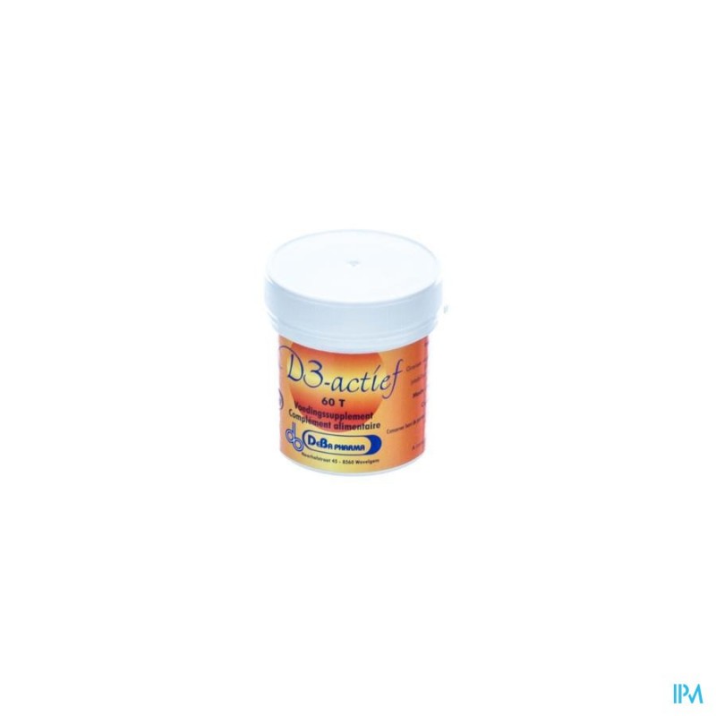 Wetenschappelijke analyses hebben aangetoond dat we in tal van organen en weefsels beschikken over Vitamine D-receptoren. Vitamine D heeft dan ook een heel brede werking in ons lichaam. Het speelt ook een rol in het celdelingsproces en het beïnvloedt onze stemming en ons welzijn. Heel wat mensen hebben overigens een tekort aan Vitamine D. Deze vitamine is slechts schaars aanwezig in onze voeding (vette vis en eieren) en kan wel worden aangemaakt uit het uv B-licht van de zon, maar dat is alleen van mei tot en met oktober krachtig genoeg om Vitamine D aan te maken. Daar komt nog bij dat ouderen, kinderen en personen met een donkere huidskleur gevoelig zijn voor een Vitamine D-tekort. Vitamine D3 draagt bij tot: ? de normale opname van calcium en fosfor ? een normaal calciumgehalte in het bloed ? de instandhouding van gezonde botten en tanden ? de instandhouding van de normale spierwerking ? een normale werking van het immuunsysteem D3-actif Comp 60x15mcg Deba is een voedingssupplement, verkrijgbaar in uw buurtapotheek of online apotheek. Neem niet meer dan de aanbevolen dagelijkse dosis vermeld op de verpakking. Het vervangt geen gezonde levensstijl en gevarieerde en evenwichtige voeding. Vraag raad aan uw apotheker. Het product altijd buiten het bereik van kinderen houden.