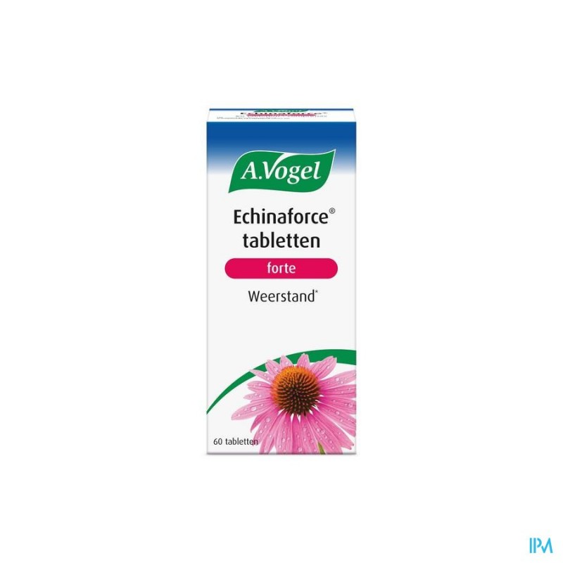 Helpt de natuurlijke weerstand te verhogen.Echinacea purpureaTijdens een studiereis in Noord-Amerika ontdekte Alfred Vogel bij de Oglala Lakota Indianen de Echinacea purpurea (rode zonnehoed). Black Elk, opperhoofd van de Oglala Lakota Indianen, deelde met hem de eeuwenoude kennis over de bijzondere eigenschappen van deze plant. Alfred Vogel kreeg enkele zaden van de plant mee naar Zwitserland, waar hij samen met een team het bekende natuurlijke middel Echinaforce ontwikkelde.In Echinaforce forte wordt, volgens de laatste wetenschappelijke inzichten, een hoge concentratie verse Echinacea purpurea verwerkt.Eén tablet bevat 1200 mg Echinacea purpurea-extract.