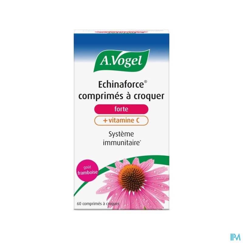 A.vogel Echinaforce Forte+vit C Kauwtabl 60 is een voedingssupplement, verkrijgbaar in uw buurtapotheek of online apotheek. Neem niet meer dan de aanbevolen dagelijkse dosis vermeld op de verpakking. Het vervangt geen gezonde levensstijl en gevarieerde en evenwichtige voeding. Vraag raad aan uw apotheker. Het product altijd buiten het bereik van kinderen houden.