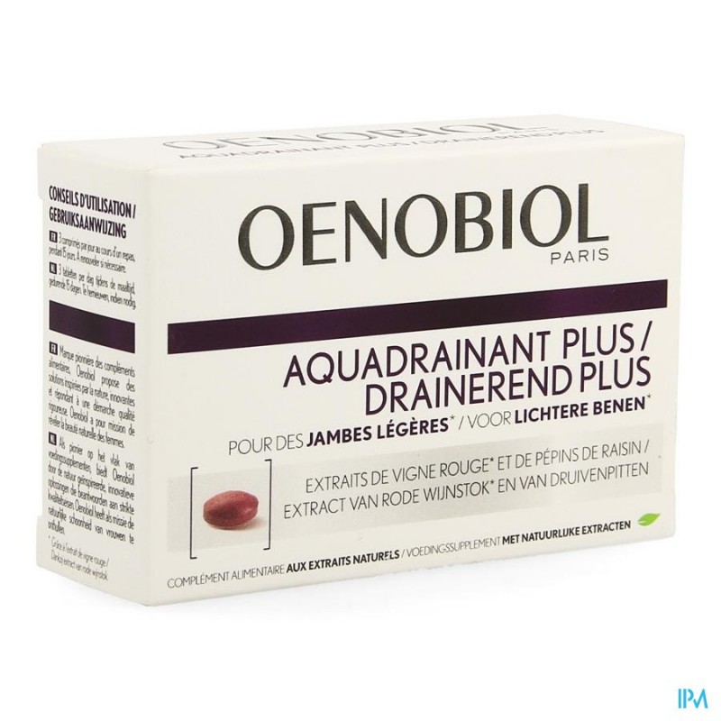 Oenobiol Drainerend Plus bevat druivenpitextract, vitamine C en rode wijnstok, en helpt het gevoel van zware benen te verminderen.